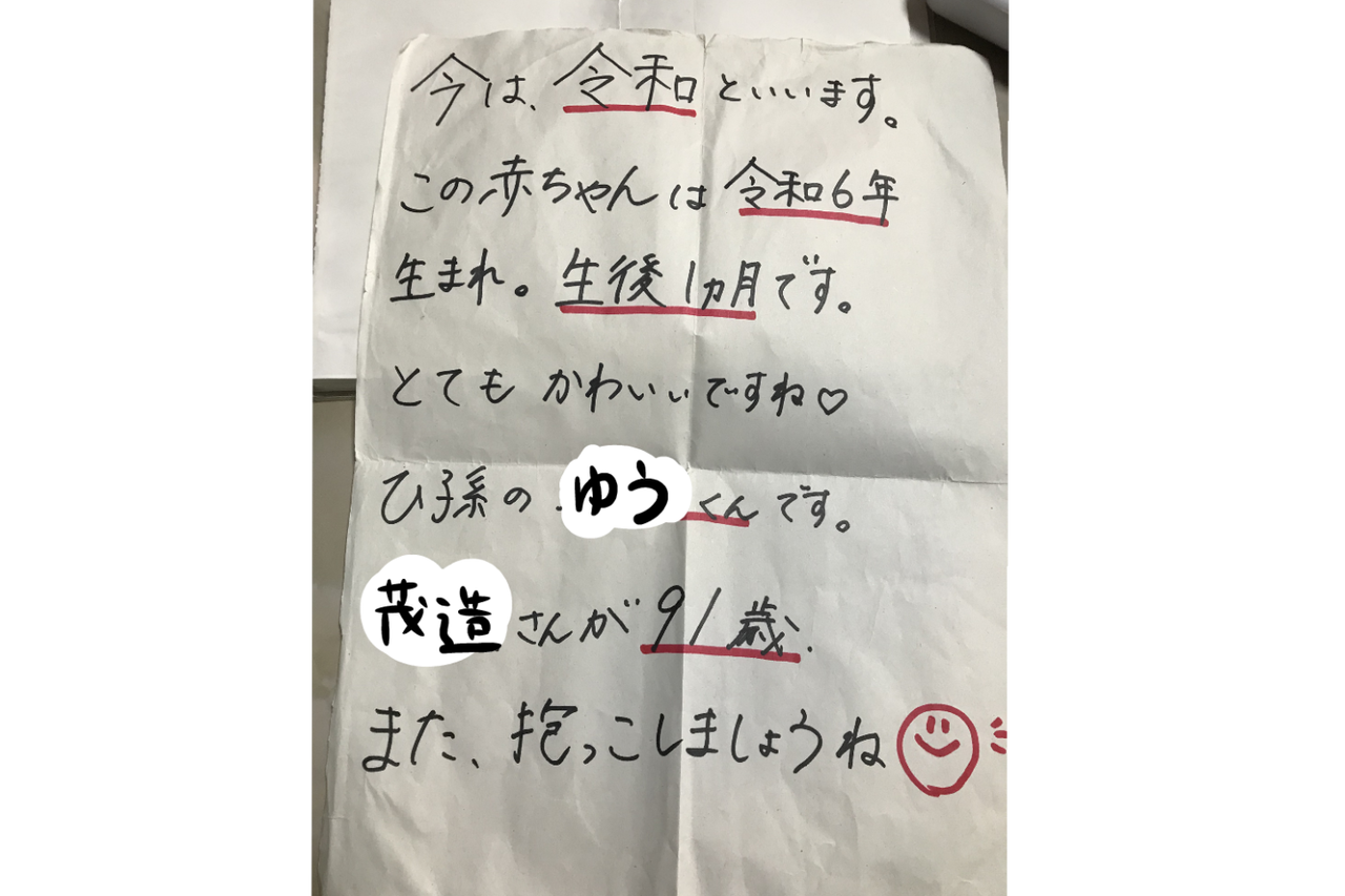 見ると『今は令和といいます。この赤ちゃんは令和6年生まれ。生後1か月です。』と書いてあった。